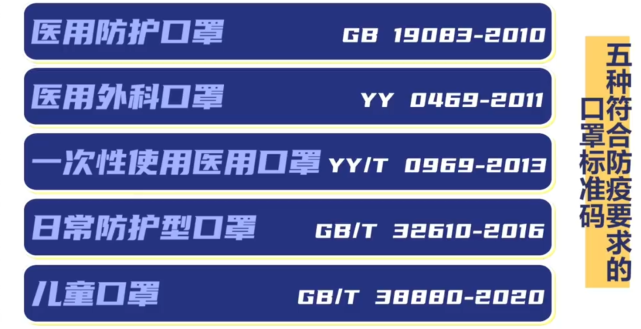 但它是否是具有防疫功能呢?其實我們還是得通過看外包裝的編碼來進行識別。一般正規(guī)的口罩外包裝都會標注執(zhí)行標準碼,而一能達到防疫要求的只有五種編碼,醫(yī)用防護口罩(GB19083-2010)、醫(yī)用外科口罩(YY0469-2011)、一次性使用醫(yī)用口罩(YY/T 0969-2013)、日常防護型口罩(GB/T 32610-2016)和兒童口罩(GB/T 38880-2020)。