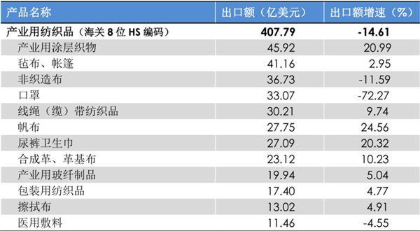 2022年1-11月產(chǎn)業(yè)用紡織品行業(yè)及主要產(chǎn)品出口情況