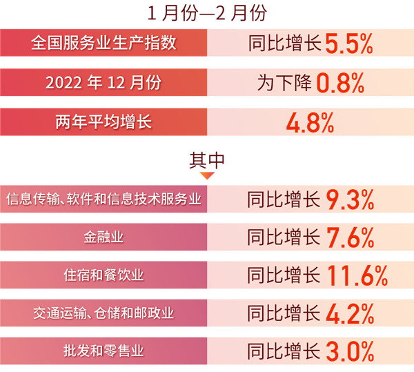 “從服務(wù)業(yè)來(lái)看,1—2月份服務(wù)業(yè)生產(chǎn)指數(shù)實(shí)現(xiàn)了由降轉(zhuǎn)增。從服務(wù)業(yè)分行業(yè)指數(shù)來(lái)看,8個(gè)分項(xiàng)指數(shù)中有7個(gè)是加快回升的,說(shuō)明服務(wù)業(yè)整體改善是比較明顯的?!备读钑熣f(shuō)。
