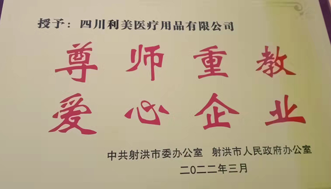 會議宣讀了《射洪市激勵教師奮發(fā)有為十條措施》和《關(guān)于表彰首屆名教師、名班主任、教育世家、光榮從教40年教師的通報》以及《關(guān)于命名射洪市尊師重教愛心企業(yè)、愛心商協(xié)會和愛心人士的決定》,并為獲獎代表頒獎。四川省利美醫(yī)療用品有限公司被授予“尊師重教 愛心企業(yè)”。