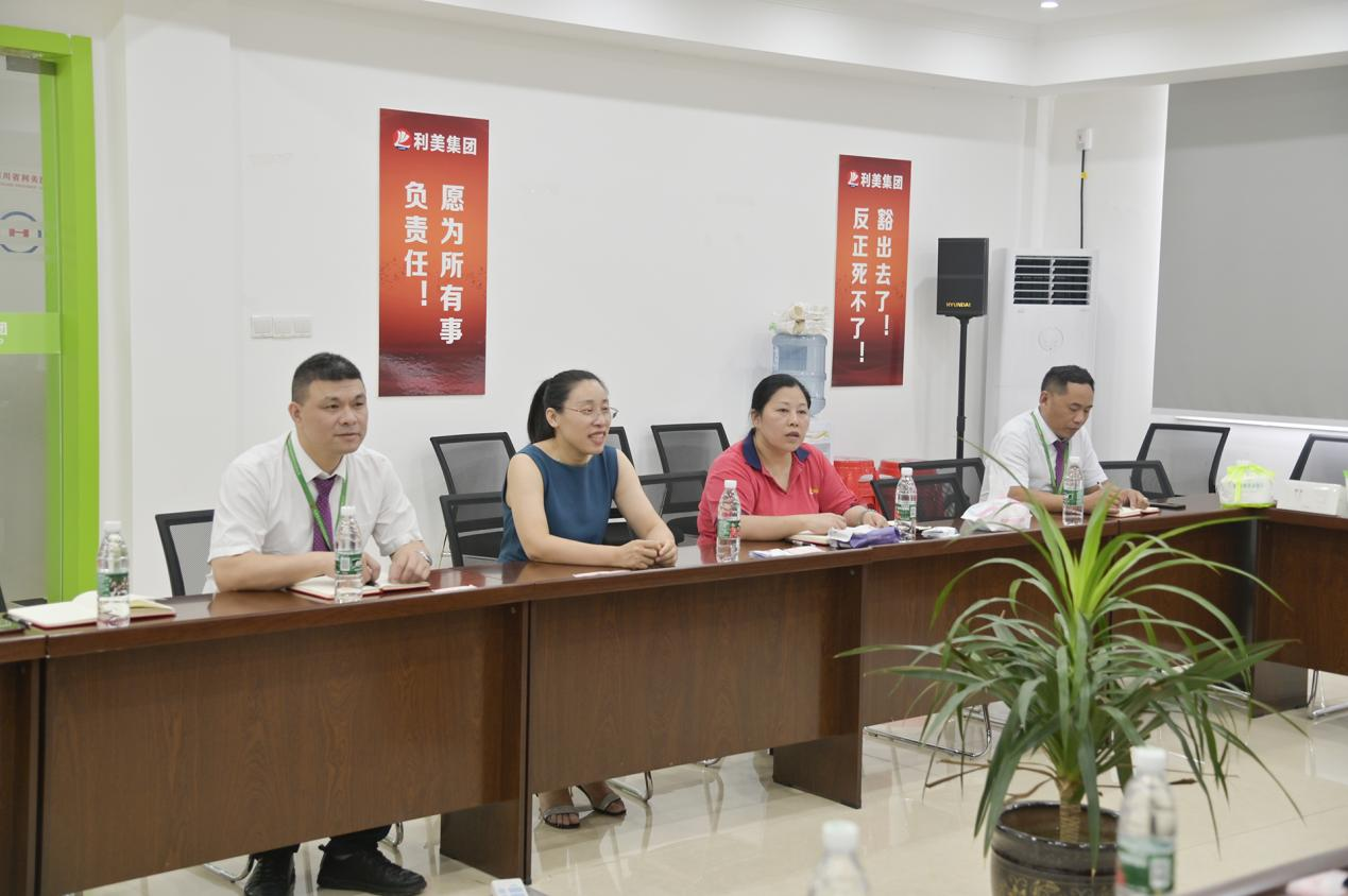 2023年7月7日上午,射洪市原政協(xié)副主席、現(xiàn)市關(guān)工委常務(wù)副主任龐明華一行蒞臨利美集團(tuán)參觀考察企業(yè)關(guān)愛(ài)職工下一代;指導(dǎo)黨建、關(guān)工委建設(shè)工作,利美集團(tuán)總經(jīng)理張小麗、生產(chǎn)副總夏海燕等陪同參觀考察。